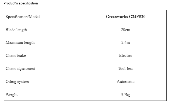 Greenworks G24PS20 24V 20CM Cordless Pole Saw (Without Battery & Charger)