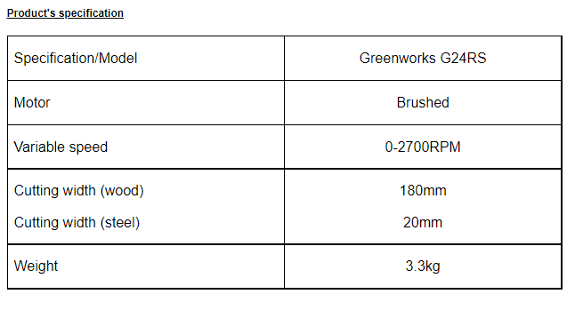 - Greenworks G24RS has a large blade resembling that of a jigsaw.