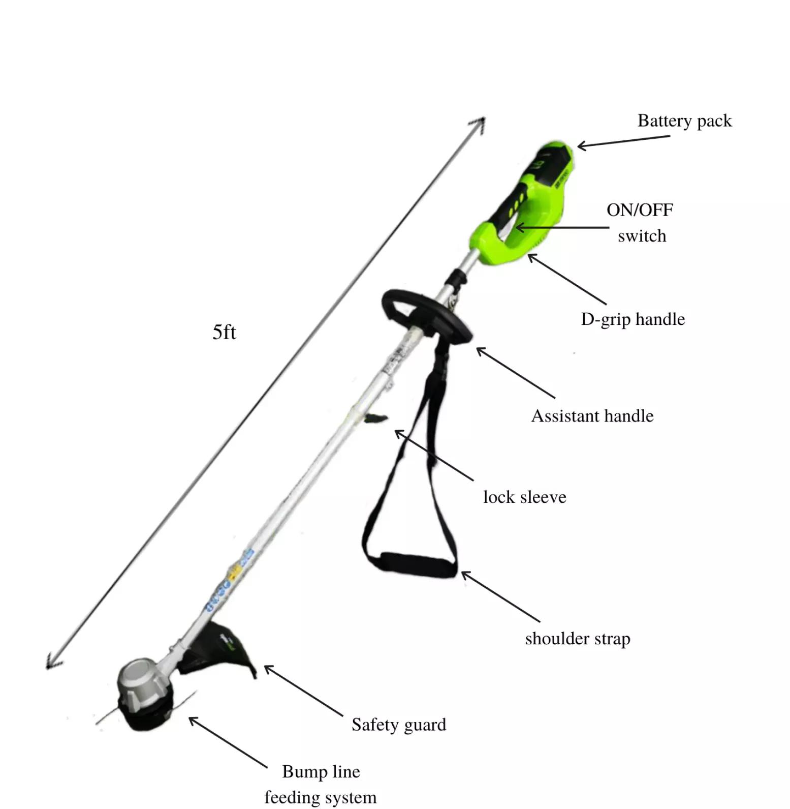 - Greenworks GD40BC allows the user to carry job around the garden without being constrained by where the nearest electrical socket is. This model has a straight shaft along with front-mounted motor that is perfect and professional's choice of layout for balance and control.GD40BC also has a split shaft which is multi attachment capable.