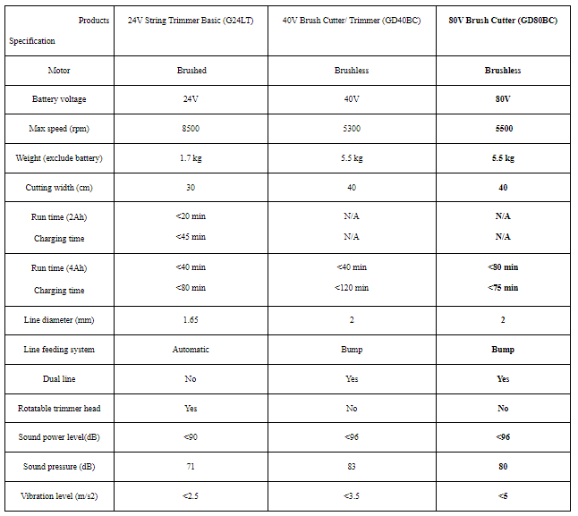 - GD80BC uses 80V Lithium-ION 4Ah battery which ensures a very long trim time with extremely high speed.