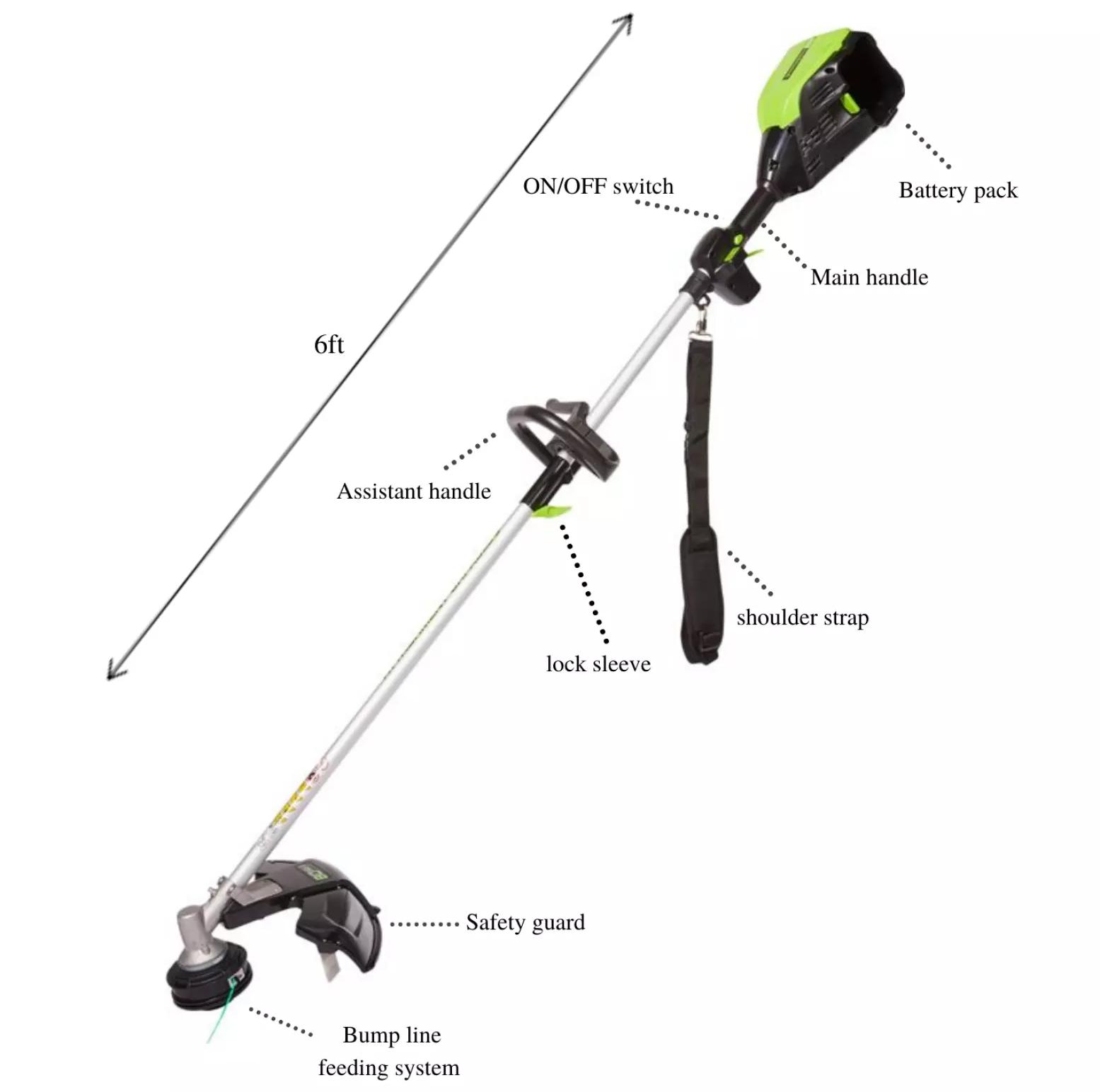 - GD80BC has a split boom design which accepts most gas attachment that includes 14/16 inches string trimmer bump feed attachment.
