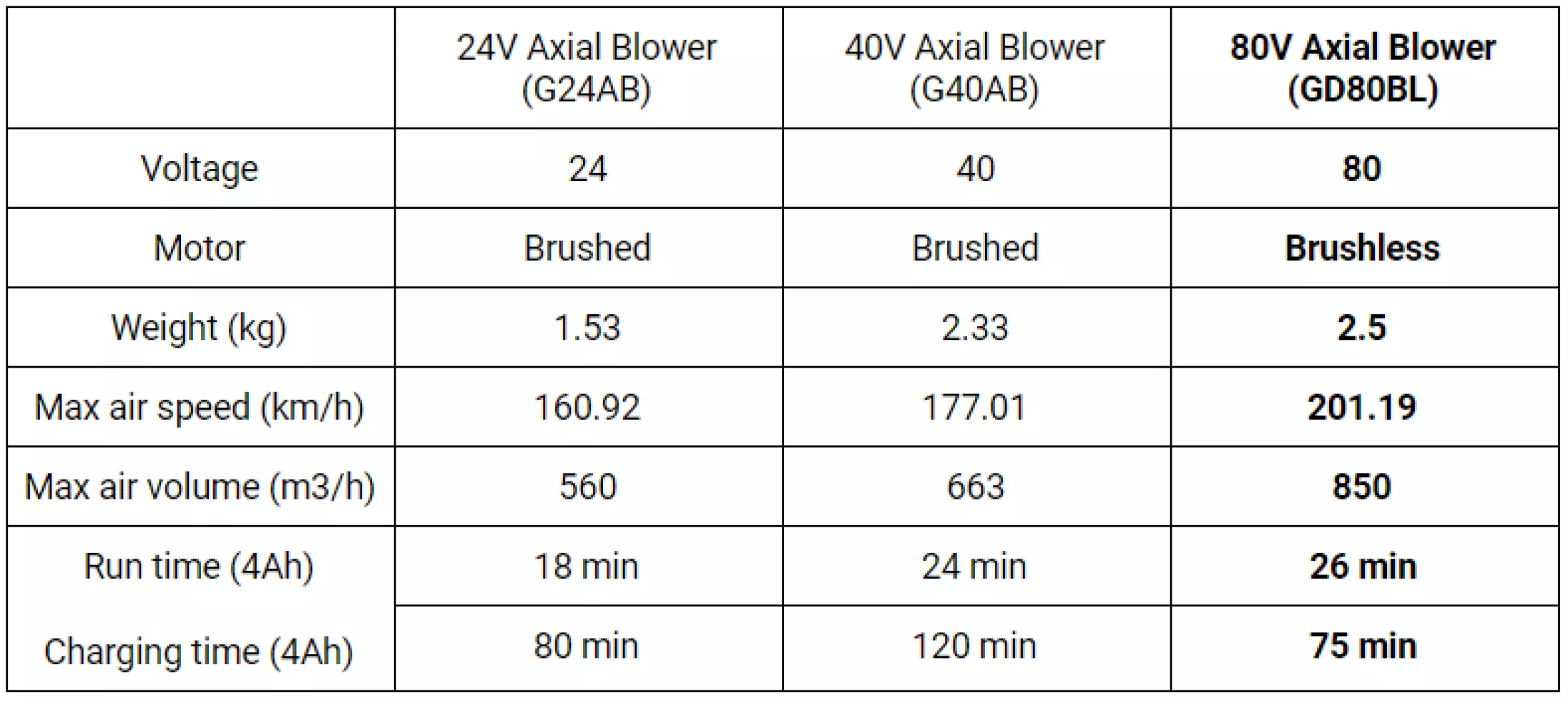- Thanks to GD80BL's axial fan and brushless motor, low weight and simplicity, this blower can cope with damp leaves without blocking.